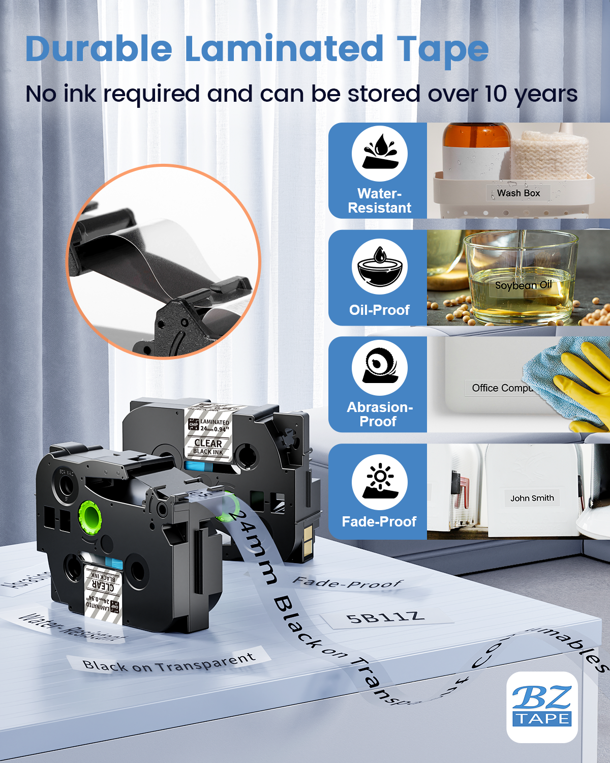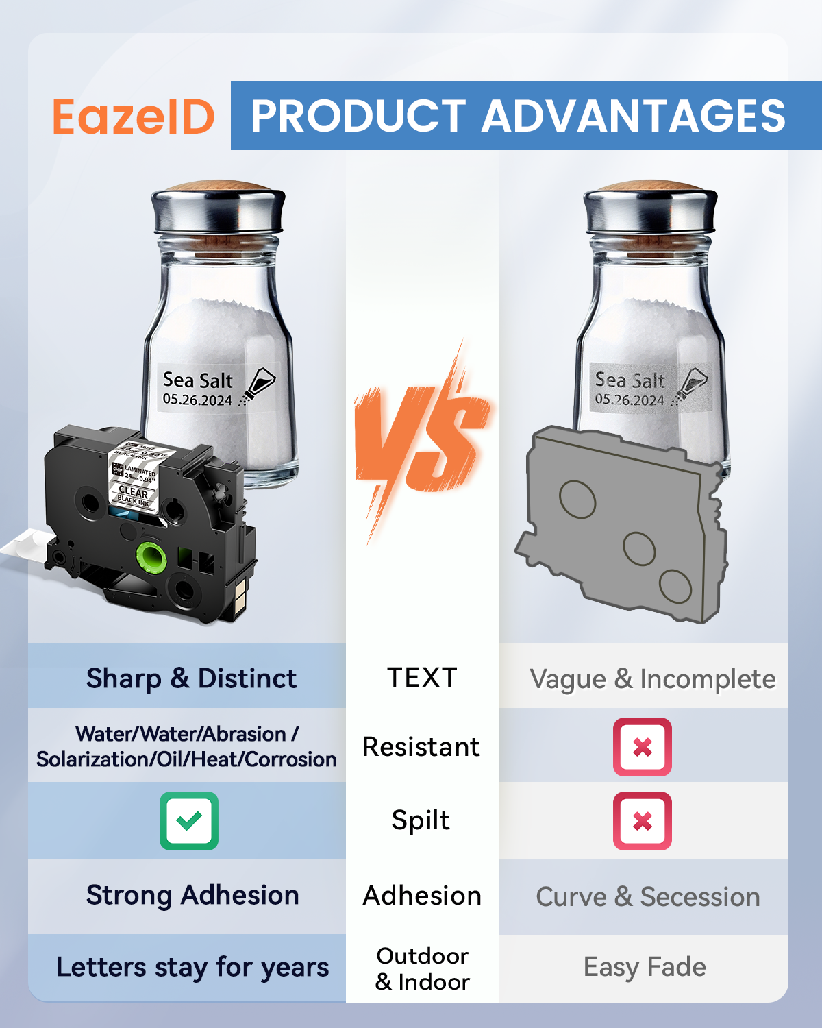 - Laminated & Long-lasting: These EazeID compatible TZe label tapes TZe-151 are laminated, so these TZe151 labels can withstand water, fade, abrasion and temperature. Replace TZe-151 label tapes are suitable for outdoor and indoor use