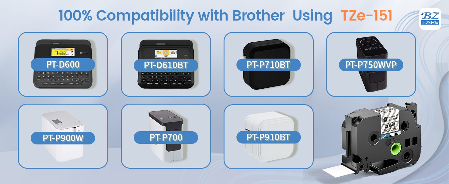 - Note: These Compatible Brother P Touch 24mm Label Tapes TZe-151 CAN NOT work with below Brother P Touch label makers, such us PT-D210, PT-D220, PT-H110, PT-H111, PT-D200, PT-D460BT, PT-D410, PT-D400, PT-M95, PT-90, PT-85, PT-80, PT-70, PT-65, etc. Please check the model of available label maker first