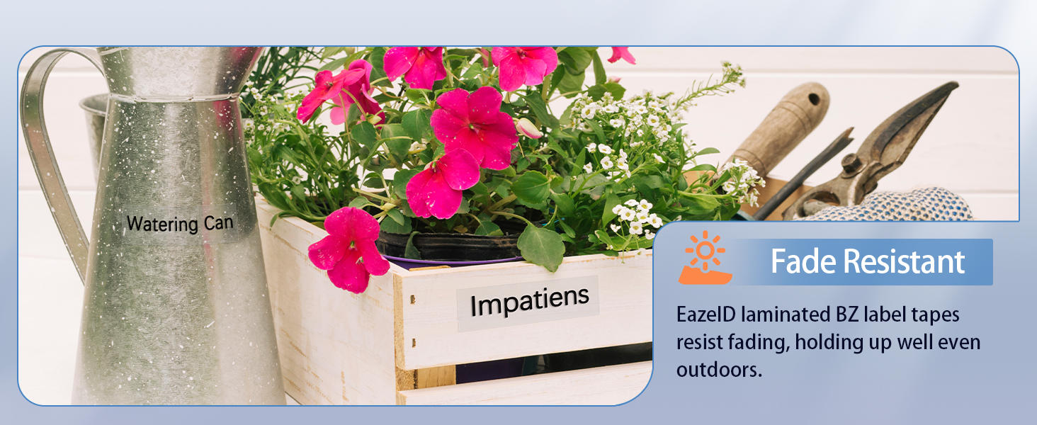 - Wide application: EazeID compatible Brother Ptouch 1 inch 24mm TZe label tape is a good addition for business, home, office, retail shop, garden and warehouse, etc. TZe-151 label tape is suitable for labeling kitchen, shelving, cabinets, files, folders, accessories. Great for creating name badges, luggage and outdoor plant signage labels and more