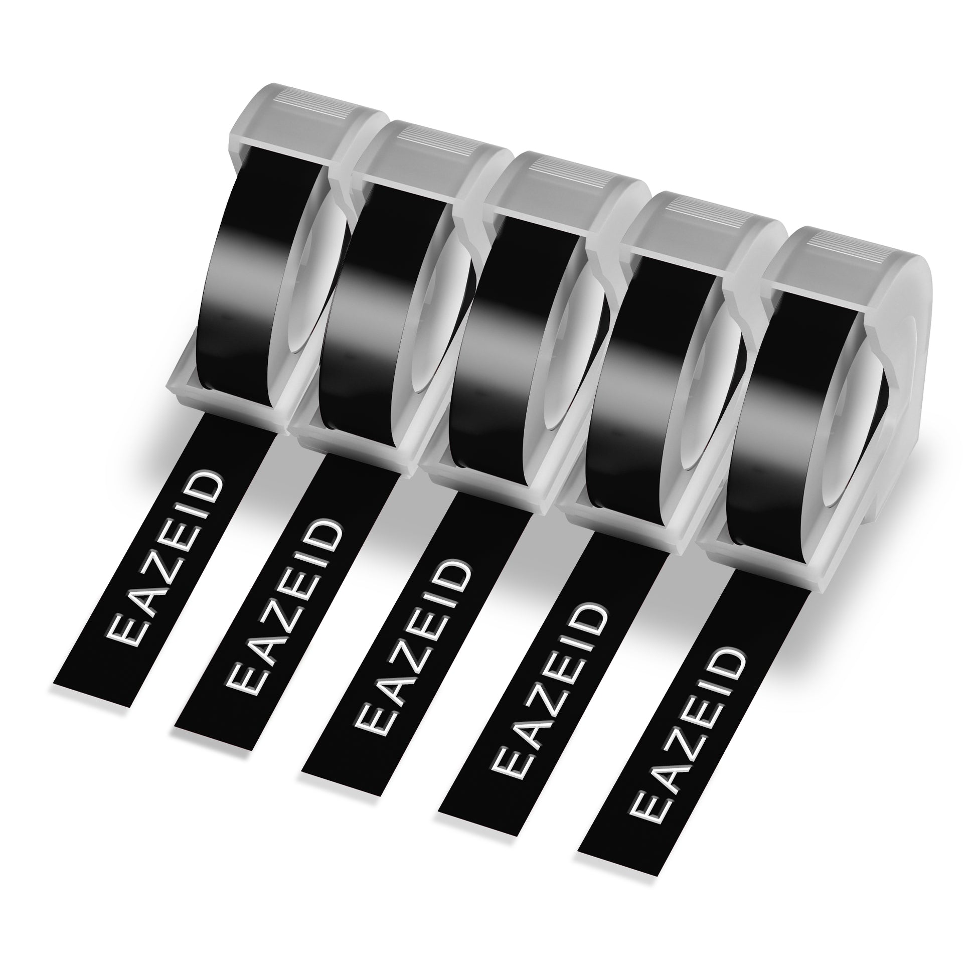 Package Included : 5 Packs Dymo Embossing label tape. Color: White on Black Embossing Label Tape, Size: 3/8 inch (9mm) x 9.8 feet (3m)