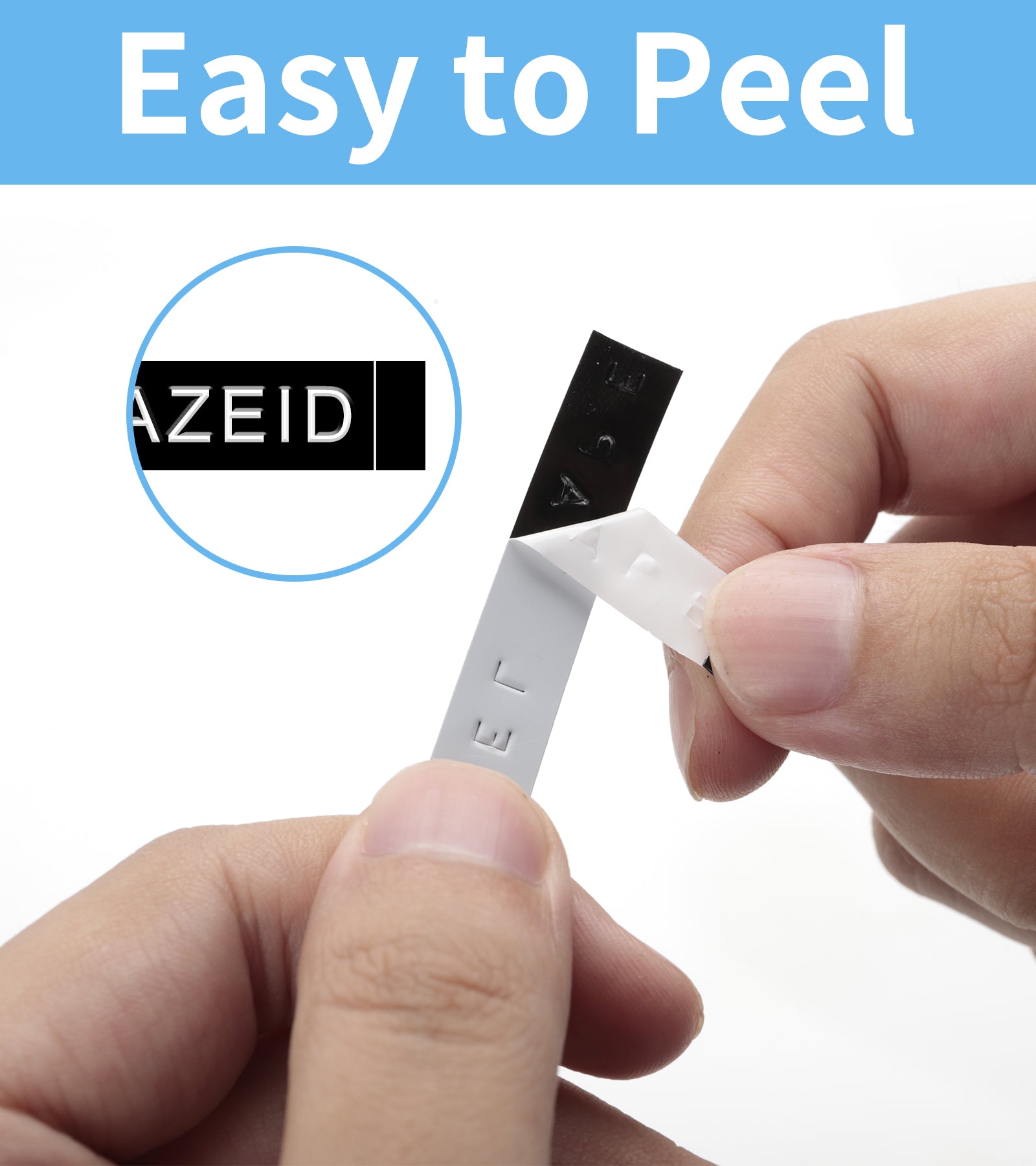 Effortless Peel and Clear Printing: Our plastic 3D embossing tape is compatible with easy peel-off functionality. When the labels are removed, there is no sticky residue left behind. When used with our embosser, the printing appears clear and natural. Choosing our EazeID label tape is an excellent decision for labeling and organizing items, as it aids in efficient classification
